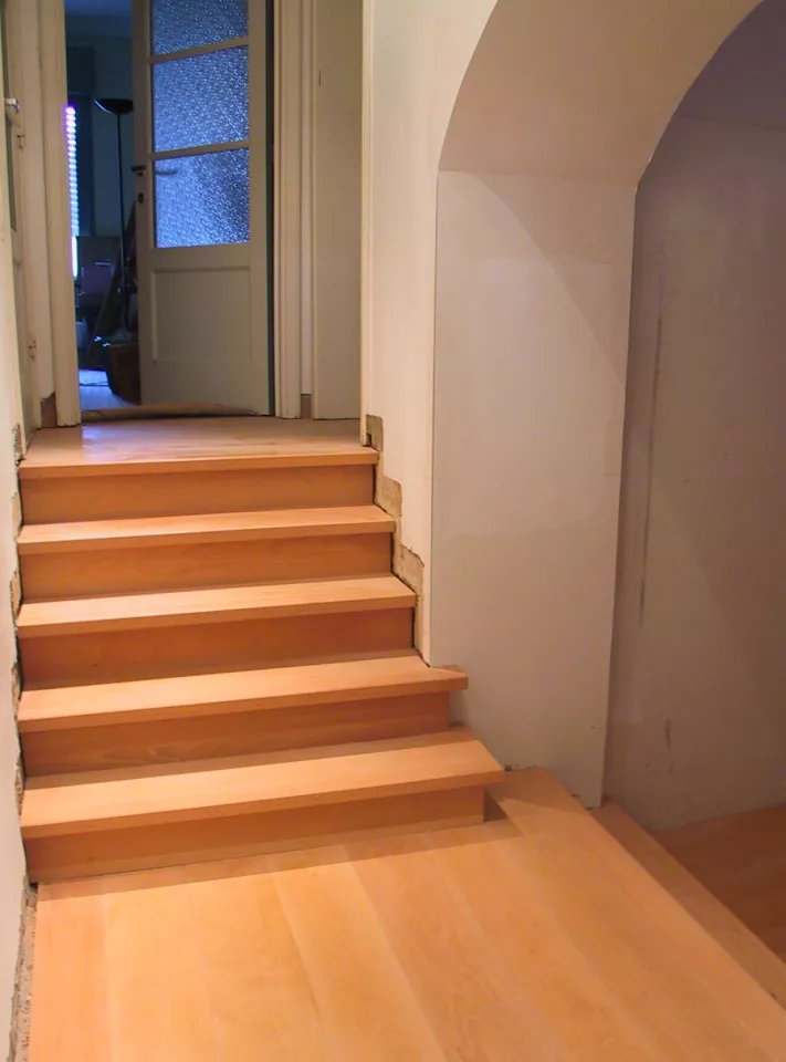 Pour les escaliers ajouré sans limons, il faut s'assurer que les murs sont suffisamment solides pour permettre l'ancrage invisible des marches (tasseau et rainure arrêtée). Les marches doivent faire au moins 57 mm d'épaisseur. Ce principe ne vieillit pas toujours bien car il n'existe aucun lien entre les marches et les fixations peuvent prendre du jeu dans le mur (c'est le limon qui assure la cohésion de l'escalier). Je déconseille ce principe.